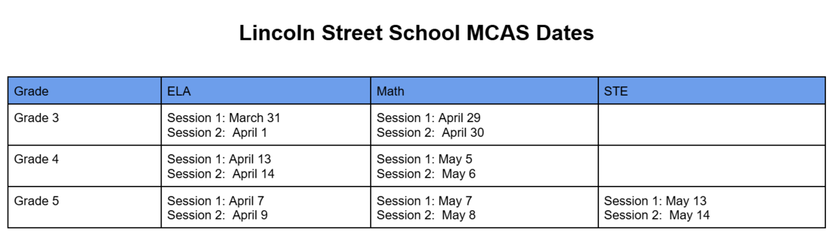 MCAS DATES (Updated from February)