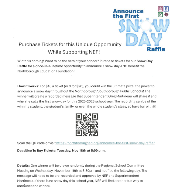 November 26: Thanksgiving break, 12:05 dismissal